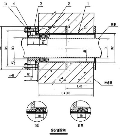 2、柔性防水套管一般穿過墻壁之處受有振動或有嚴(yán)密防水要求的構(gòu)筑物。